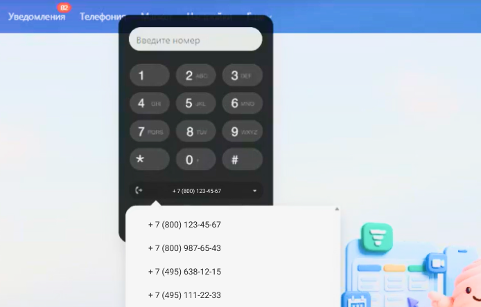 • Экономьте до 10% рабочего времени: не переключайтесь между окнами и программами. Все звонки, карточки клиентов и сделки — в одном месте.