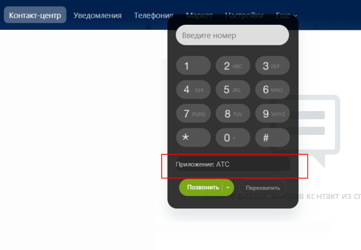 2. После обновления или настройки интеграции перейдите в интерфейс АТС и включите сценарий звонка через виджет. Функция WebRTC подключится автоматически.