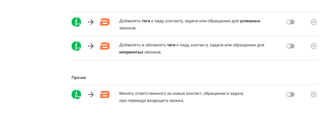 При этом для каждого типа звонка могут действовать свои правила интеграции.