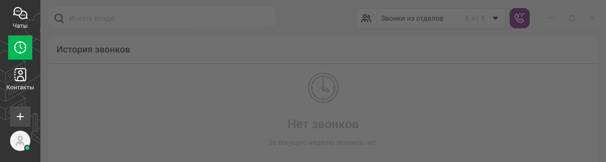 Чтобы быстро найти нужного клиента, коллегу или канал, воспользуйтесь единым окном поиска. Прямо из окна поиска можно написать или позвонить контакту.