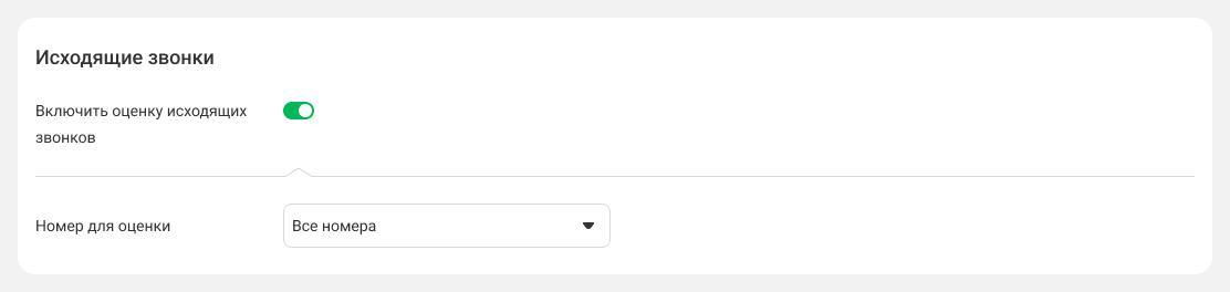 4. Аналогичным образом активируйте переключатель «Оценка исходящих звонков». Выберите внутренние номера сотрудников или группы сотрудников, с которых совершаемые вызовы будут завершаться запросом оценки.