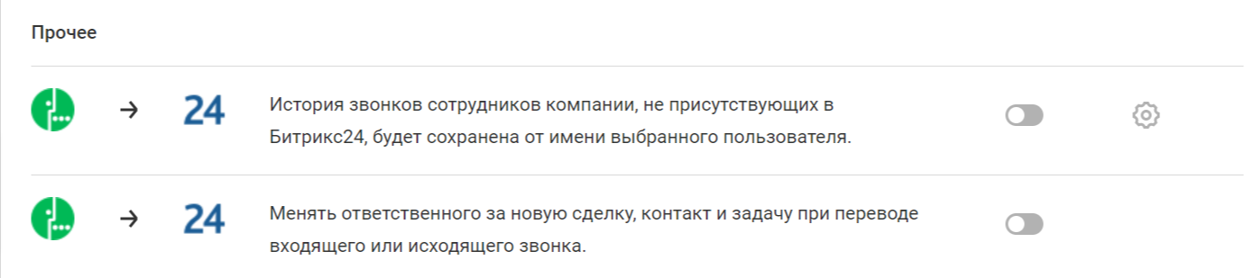 • история звонков ваших сотрудников, не присутствующих в Битрикс24, будет сохранена от имени выбранного пользователя. Этой опцией можно пользоваться, если вы не сопоставили всех менеджеров или если у вас есть сотрудники, которые не работают в Битрикс24, но могут звонить клиентам. Также для несопоставленных пользователей будут создаваться сделки и контакты, а ответственным будет назначен выбранный в настройках пользователь.